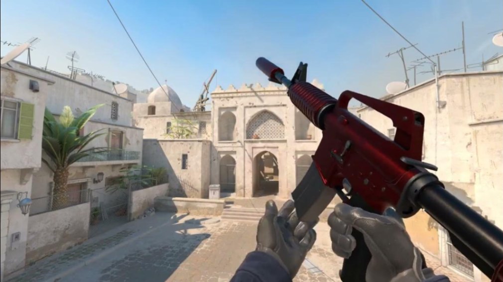 Red skins hit differently in-game. They contrast sharply against most map textures and weapon finishes, making them visually louder without relying on stickers.